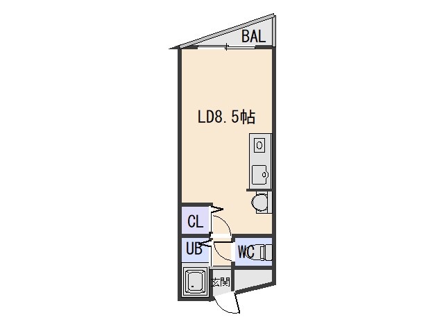 ワンルーム(19.5m²)└ LD8.5帖