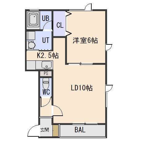 1LDK(42.93m²)└ LD10帖 K2.5帖 洋室6帖
