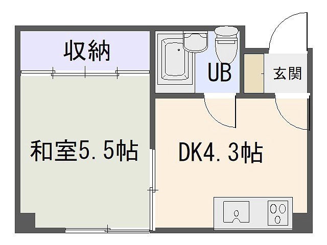 1DK(23m²)└ DK4.3帖 和室5.5帖