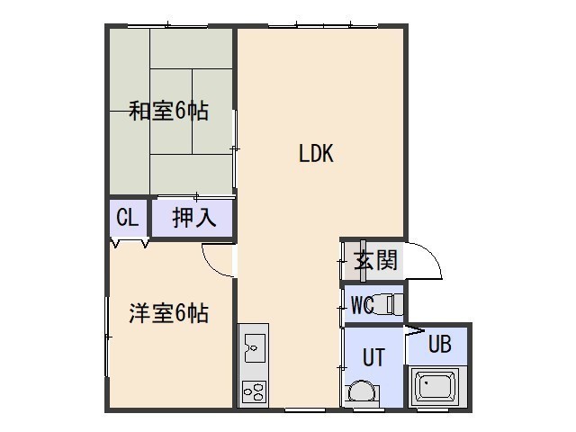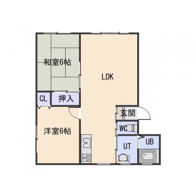2LDK(54.63m²)└ LDK 洋室6帖 和室6帖