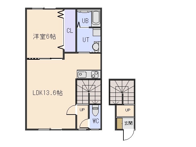 1LDK(49.27m²)└ LDK13.6帖 洋室6帖