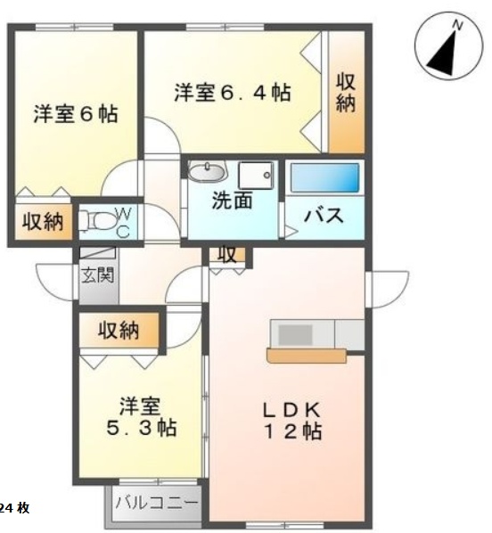 3LDK(68.1m²)└ LDK12帖 洋室6.4帖 洋室6帖 洋室5.3帖