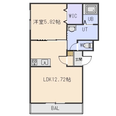 1LDK(43.44m²)└ LDK12.6帖 洋室5.8帖