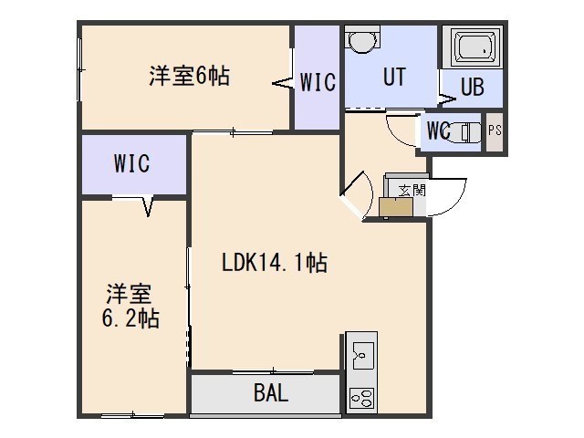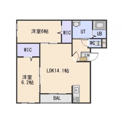 2LDK(62.38m²)└ LDK14.1帖 洋室6.2帖 洋室6帖