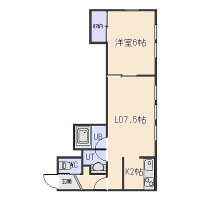1DK(35.57m²)└ LD7.5帖 K2帖 洋室6帖