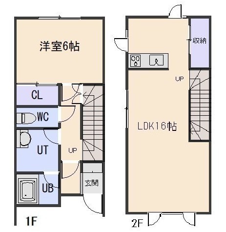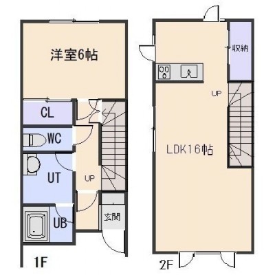 1LDK(60.22m²)└ 1階:洋室6帖 / 2階:LDK16帖
