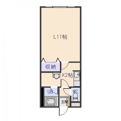 1K(34.2m²)└ 洋室11帖 K2帖