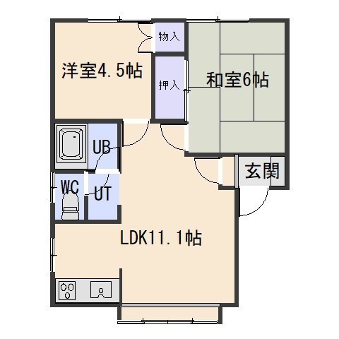 2LDK(45m²)└ LDK11.1帖 和室6帖 洋室4.5帖
