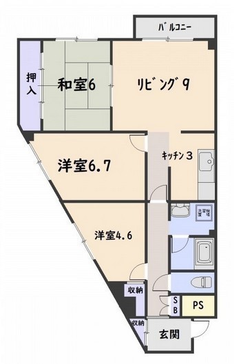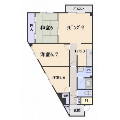 3LDK(69.53m²)└ L9帖 和室6帖 洋室6.7帖 洋室4.6帖