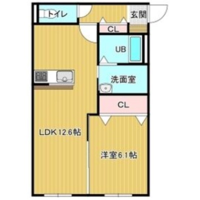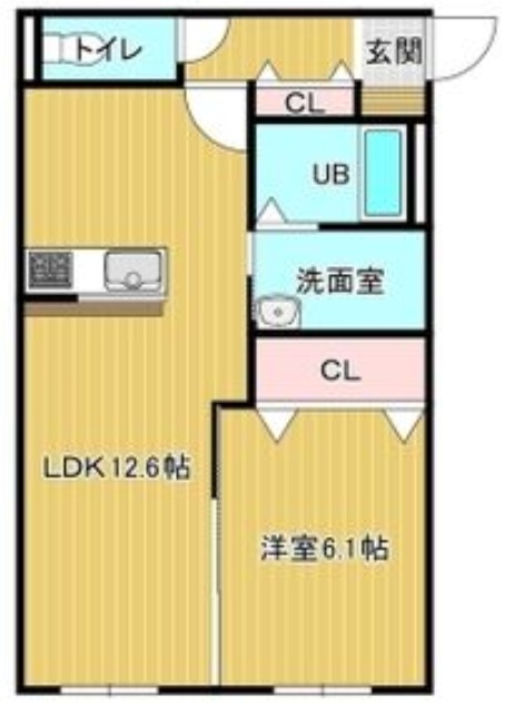 1LDK(44.1m²)└ LDK12.6帖 洋室6.1帖