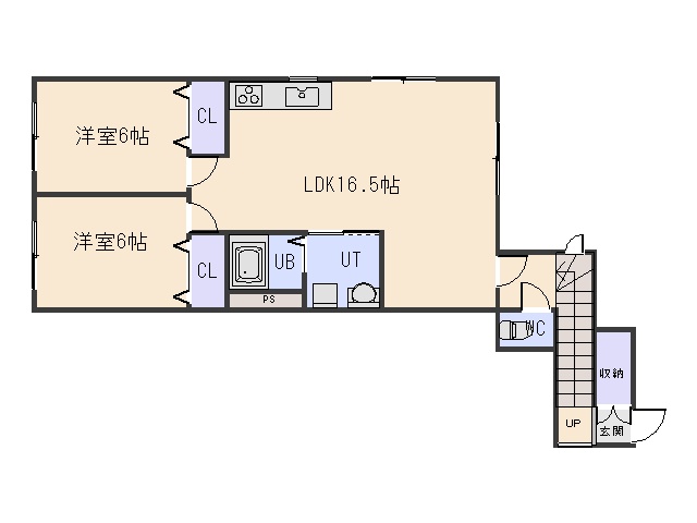 2LDK└ LDK17帖 洋室6帖 洋室6帖