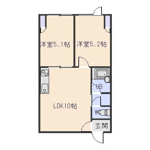 2LDK(38.84m²)└ LDK10帖 洋室5.1帖 洋室5.2帖