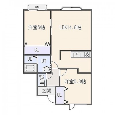 2LDK(59.5m²)└ LDK14.8帖 洋室6.3帖 洋室6帖