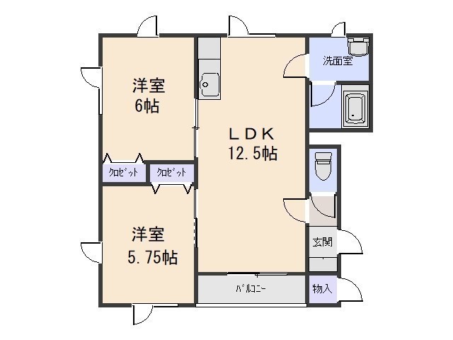 2LDK(55.17m²)└ LDK12帖 洋室6帖 洋室5.75帖