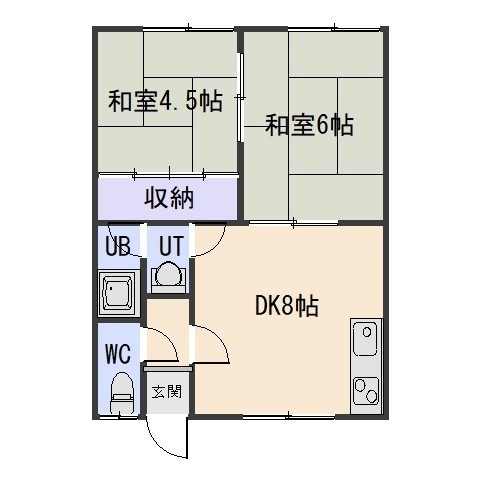 2DK(39.66m²)└ DK8帖 和室6帖 和室4.5帖