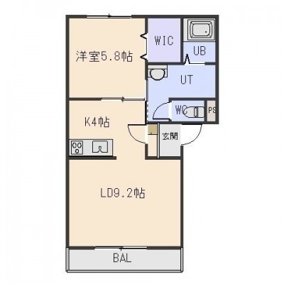 1LDK(44.32m²)└ LD9.2帖 K4帖 洋室5.8帖