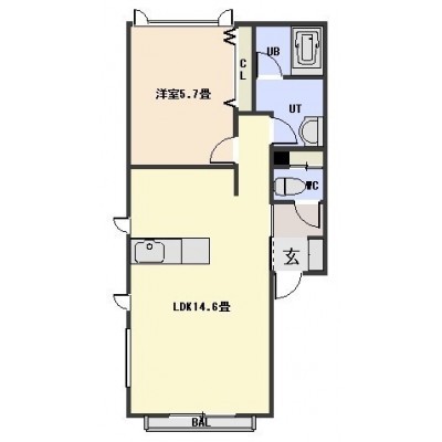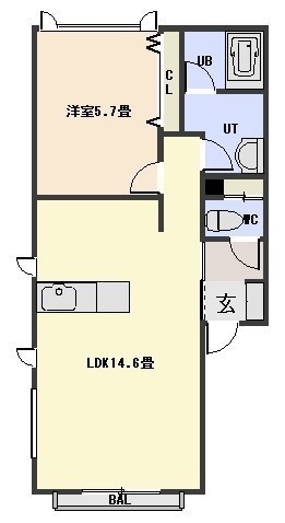 1LDK(45.9m²)└ LDK14.6帖 洋室5.7帖