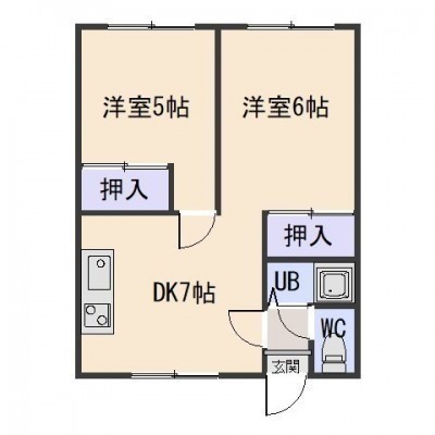 2DK(37.02m²)└ DK7帖 洋室6帖 洋室5帖