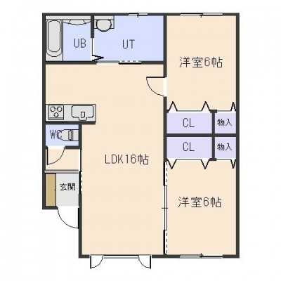 2LDK└ LDK16帖 洋室6帖 洋室6帖