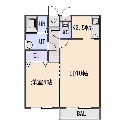 1LDK(41.78m²)└ LD10帖 K2.5帖 洋室6帖