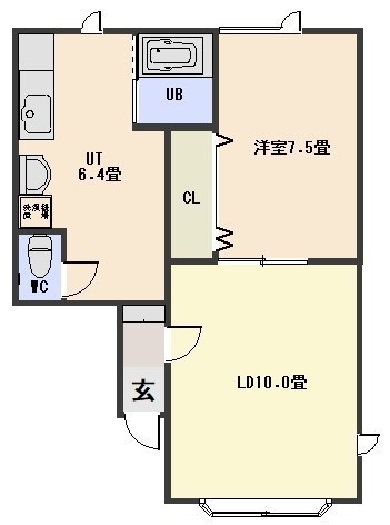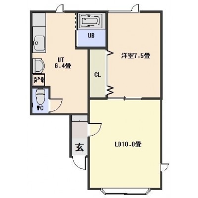1LDK(48.5m²)└ LD10帖 洋室7.5帖 その他6.4帖
