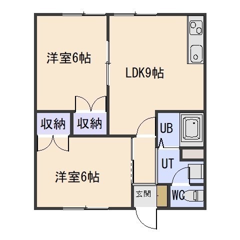 2LDK(46.28m²)└ LDK9帖 洋室6帖 洋室6帖
