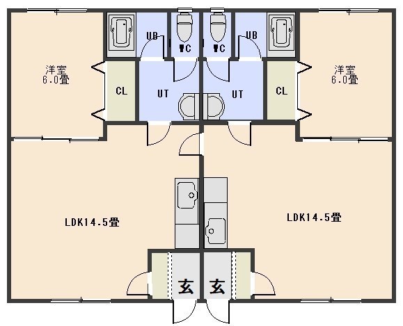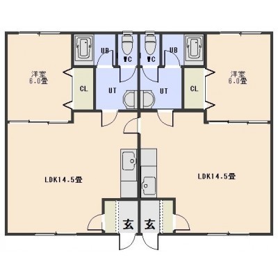 二世帯型(89.85m²)└ LDK14.5帖 LDK14.5帖 洋室6帖 洋室6帖