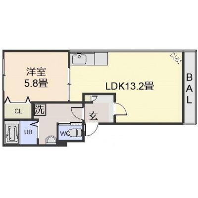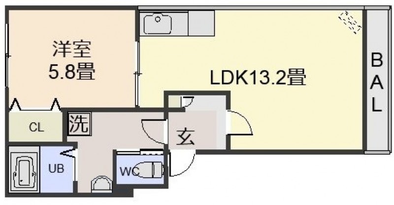 1LDK(43.13m²)└ LDK13.2帖 洋室5.8帖