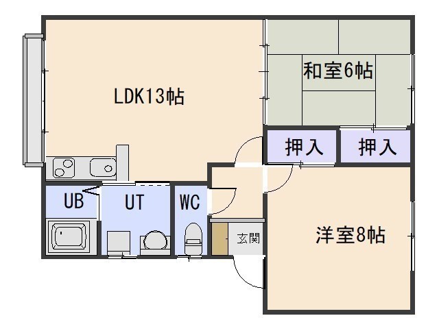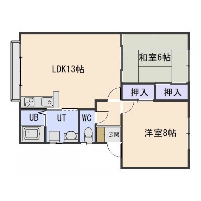 2LDK(58m²)└ LDK13帖 和室6帖 洋室8帖