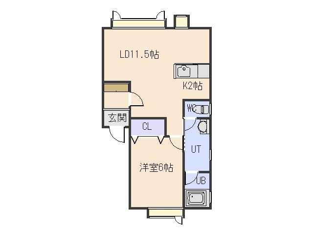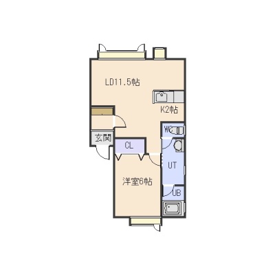 1LDK(44.42m²)└ LD11.5帖 K2帖 洋室6帖