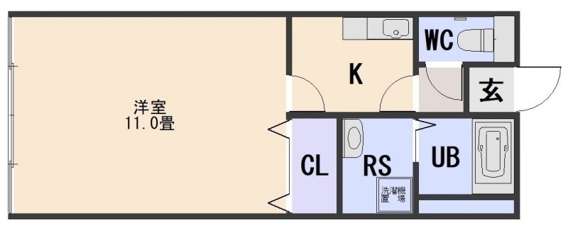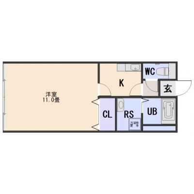 1K(34.2m²)└ 洋室11帖 K2帖