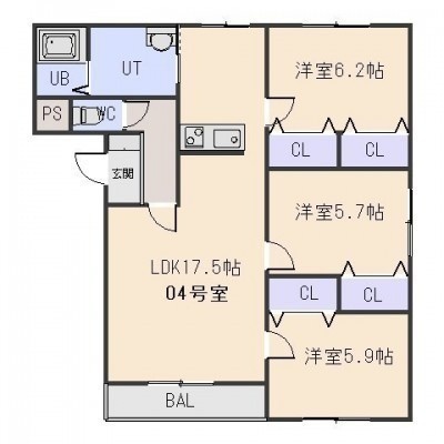 3LDK(80.33m²)└ LDK17.5帖 洋室6.2帖 洋室5.9帖 洋室5.7帖