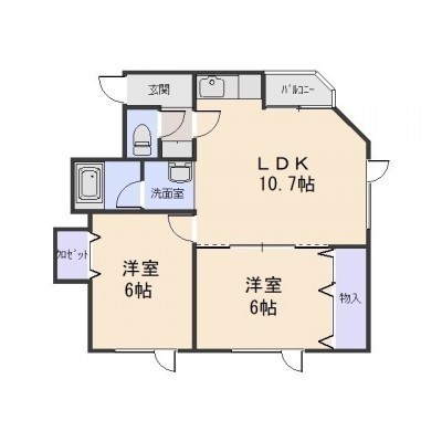 2LDK└ LDK10.7帖 洋室6帖 洋室6帖