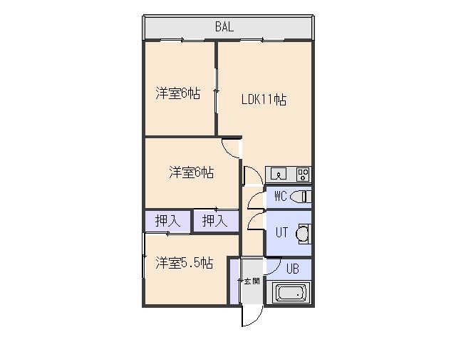3LDK(58.62m²)└ LDK11帖 洋室6帖 洋室6帖 洋室5.5帖