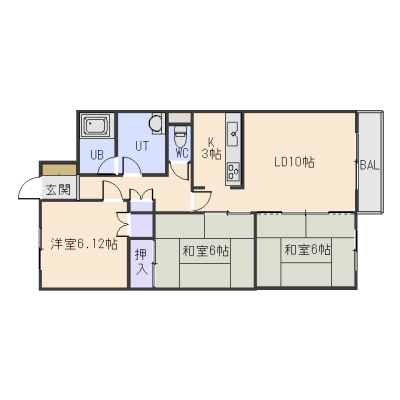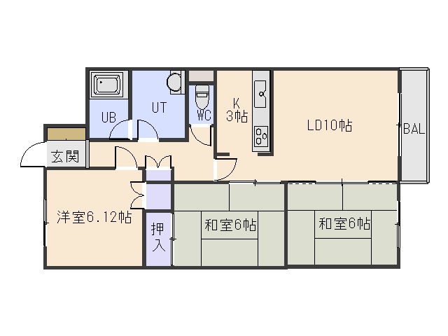 3LDK(68.95m²)└ LDK13帖 和室6帖 和室6帖 洋室6.12帖