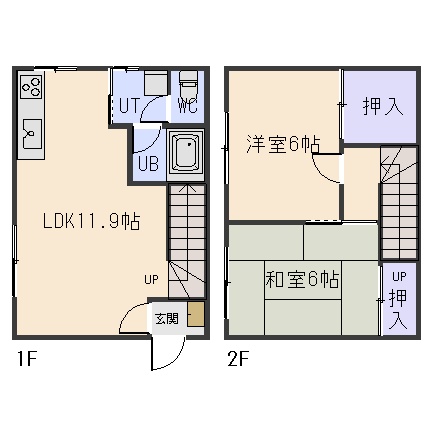 2LDK(56.7m²)└ 1階:LDK11.9帖 / 2階:洋室6帖 和室6帖