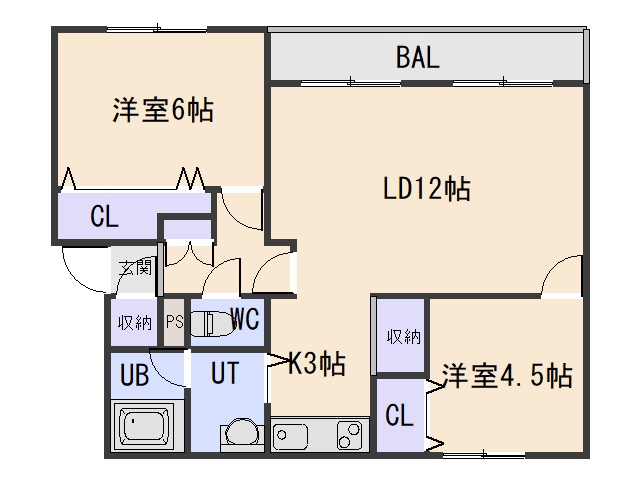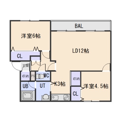 2LDK(57.24m²)└ LD12帖 K3帖 洋室6帖 洋室4.5帖