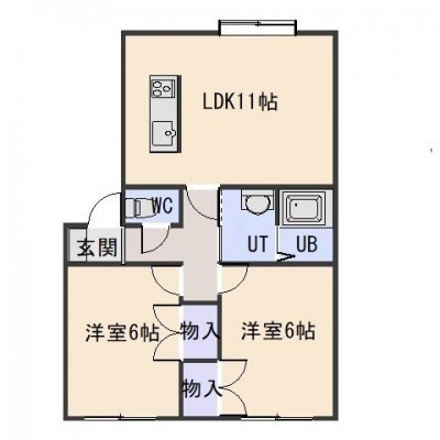 2LDK(53.93m²)└ LDK11帖 洋室6帖 洋室6帖