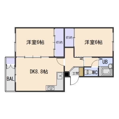 2DK(48.82m²)└ DK8.8帖 洋室6帖 洋室6帖