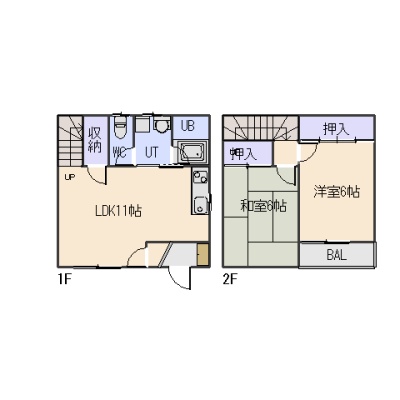 2LDK(54m²)└ 1階:LDK11帖 / 2階:洋室6帖 和室6帖