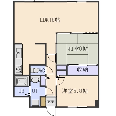 2LDK(67.5m²)└ LDK18帖 和室6帖 洋室5.8帖