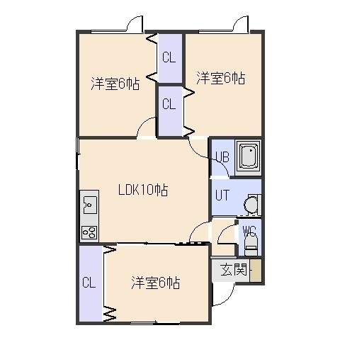 3LDK(61.15m²)└ LDK10帖 洋室6帖 洋室6帖 洋室6帖
