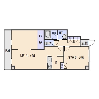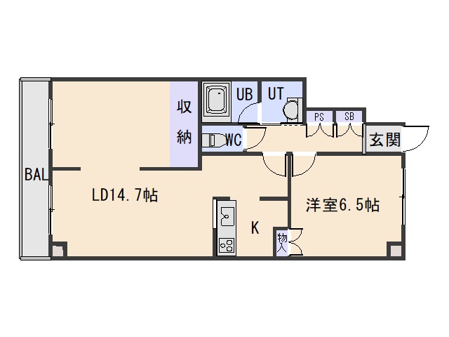 1LDK(57.11m²)└ LD14.7帖 K 洋室6.5帖