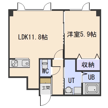 1LDK(41.69m²)└ LDK11.8帖 洋室5.9帖