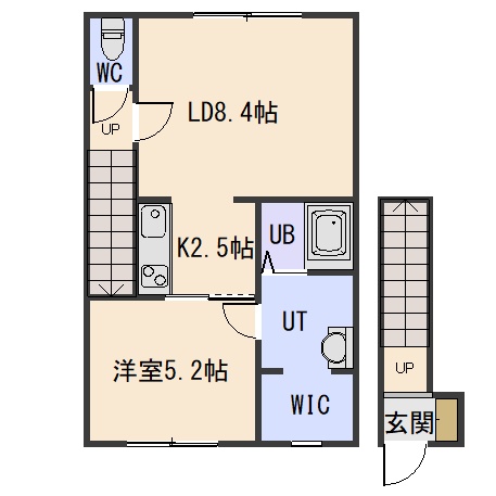 1LDK(39.85m²)└ LD8.4帖 K2.5帖 洋室5.2帖