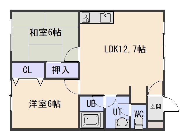 2DK└ LDK12.7帖 洋室6帖 和室6帖