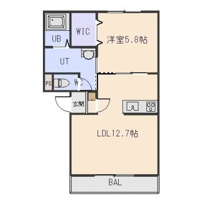 1LDK(43.44m²)└ LDK12.7帖 洋室5.8帖