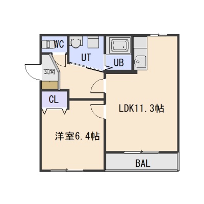 1LDK(42.12m²)└ LDK11.3帖 洋室6.4帖