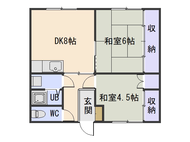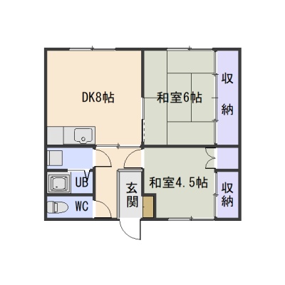 2DK(45.53m²)└ LK8帖 和室6帖 和室4.5帖