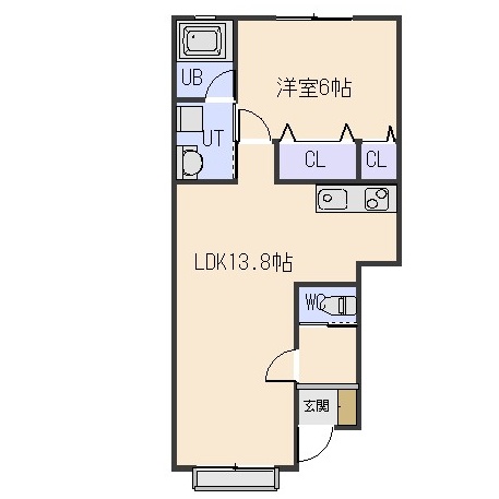 1LDK(43.05m²)└ LDK13.8帖 洋室6帖